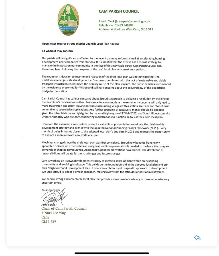 Draft Local Plan – Cam Parish Council send an open letter to SDC